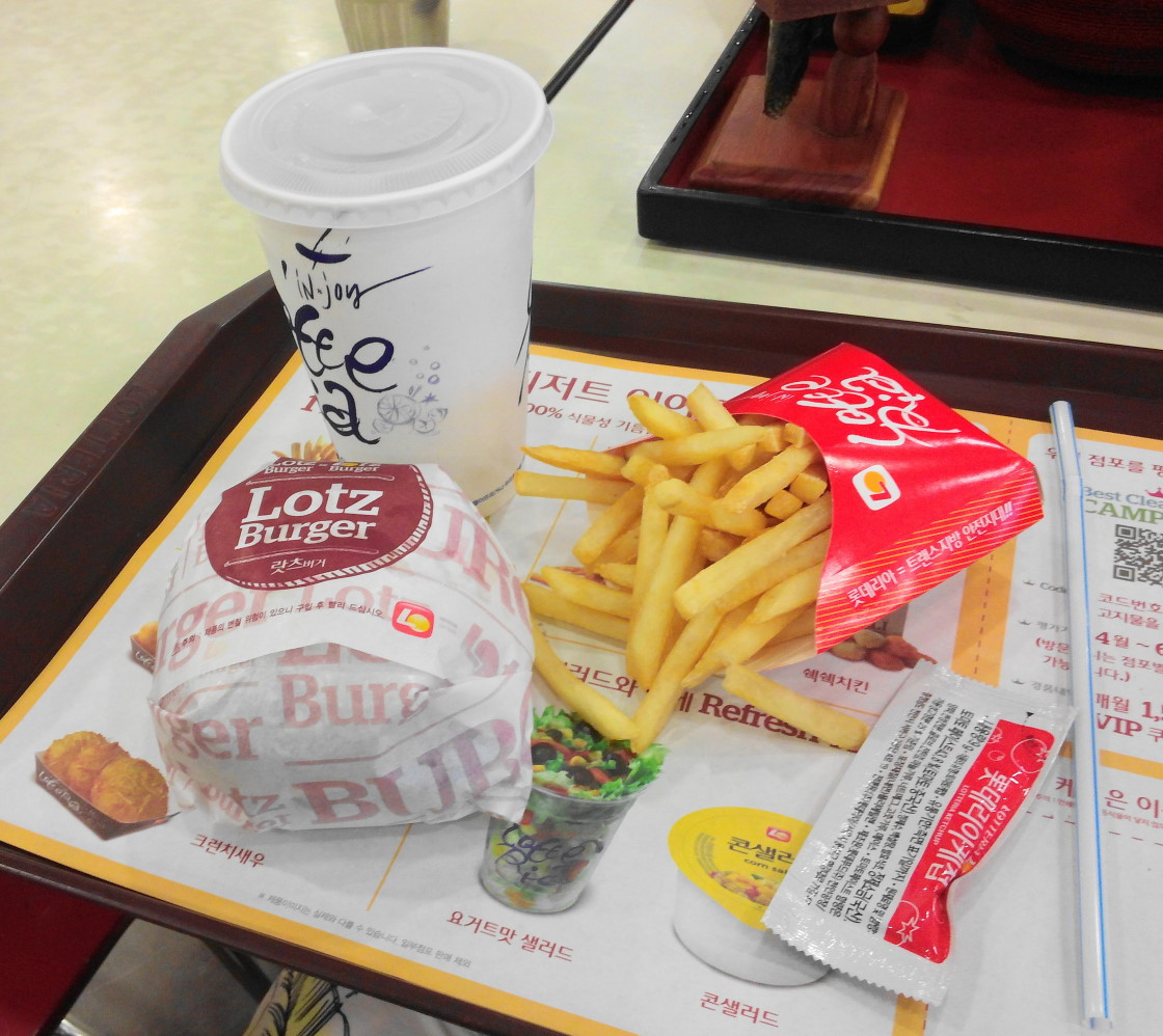 Món ăn quá quen thuộc ở Việt Nam rồi, sang Hàn lại ăn nữa thì chán ngắt. Thế nhưng nếu như nhất định cần phải tìm một quán ăn "hạt dẻ" thì Lotteria là sự lựa chọn quá hợp lý. Bạn sẽ chỉ mất 4700 won là có một bữa ăn thịnh soạn với đồ chính, đồ ăn kèm và cả nước uống tùy chọn.
