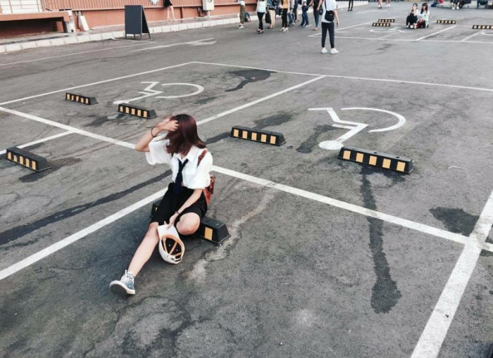 Ngay cả bãi giữ xe cũng có thể trở thành góc chụp ảnh rất "nghệ", nhớ crop dân tình đứng xa xa kia đi nha!
