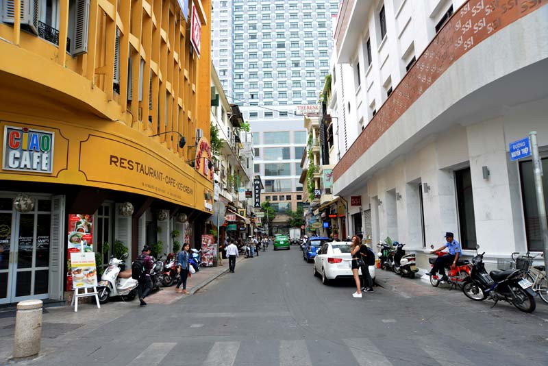 Những quán café hiện đại, khách sạn sang chảnh và chung cư cũ kỹ xen lẫn nhau nằm dọc khu phố đi bộ Nguyễn Huệ chính là nét quyến rũ kỳ lạ của một Sài Gòn náo nhiệt.