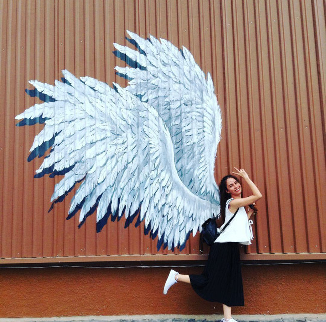 Đôi cánh 3D "huyền thoại" trên bức tưởng đỏ rực của Emart là nơi hút teen nhất.