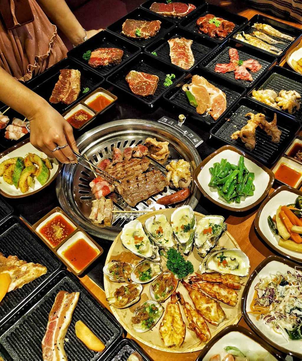 Nướng buffet: Nướng buffet là sự lựa chọn lý tưởng cho hội mê ăn sở hữu "những chiếc bụng không đáy". Với hình thức nướng này, bạn sẽ được thỏa sức thưởng thức nhiều món ăn ngon từ thịt, rau, củ cho tới bánh, chè mà không phải lo về giá.