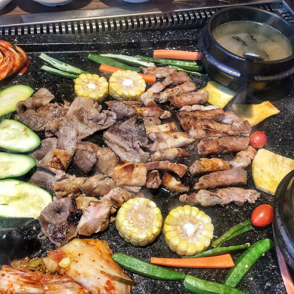 Nướng bàn đá: Khi bạn nướng bàn đá, món ăn sẽ không tiếp xúc trực tiếp với lửa. Thay vào đó, thực phẩm được làm chín nhờ hơi nóng từ bàn đá đặc biệt. Diện tích bàn đá lớn cho phép bạn có thể nướng nhiều món cùng một lúc. Cách nướng bàn đá giúp thịt vừa đủ độ cháy vàng bên ngoài nhưng vẫn mềm, ngọt và thơm ngon.