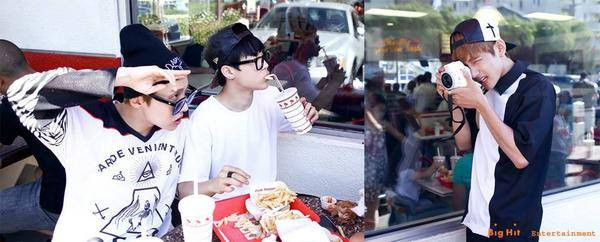 Trong khi mọi người đang ăn, V vẫn hào hứng nhận nhiệm vụ chụp ảnh.
