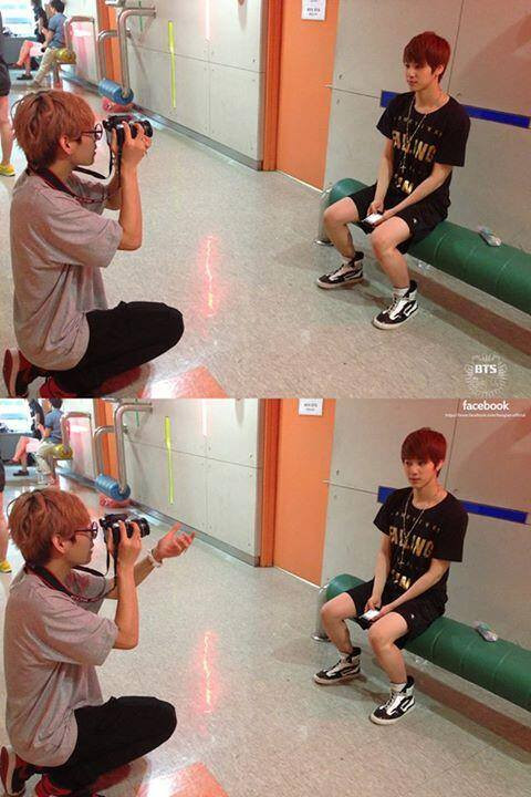 Thời gian BTS chờ đợi ngoài sân bay dĩ nhiên là dành để diễn sâu cho V tác nghiệp.