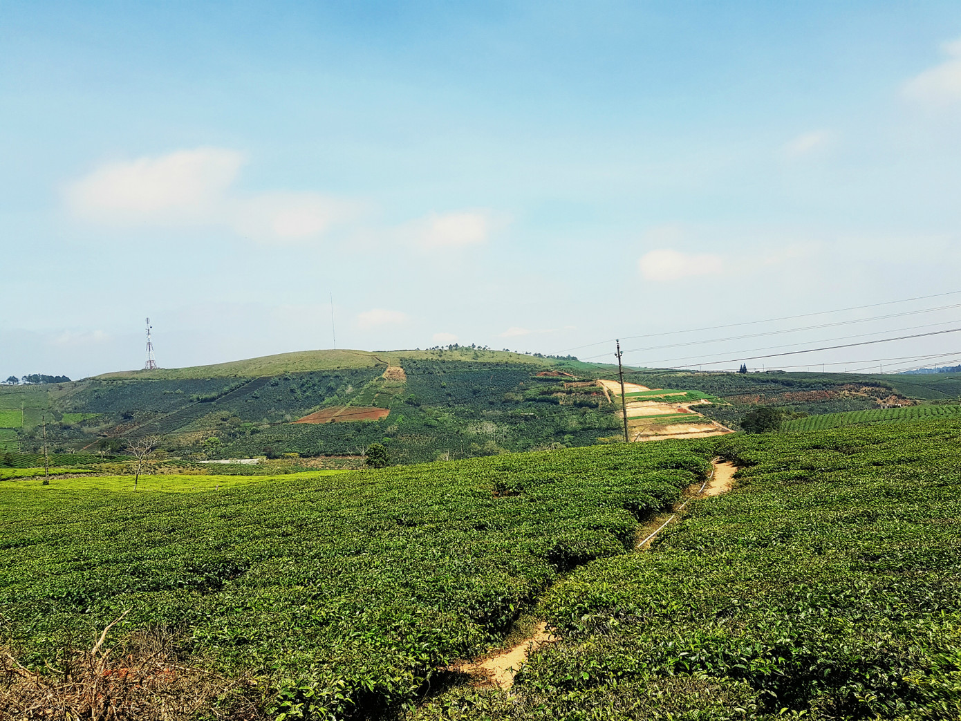 Trên đường đến Đồi Chè, đi ngang qua Trại Mát. Nếu chịu khó dậy sớm bạn sẽ có thể thấy mây mù che phủ trên đường đi, nếu không thì khung cảnh xung quanh cũng đủ làm bạn “choáng ngợp”. Ngoài khung cảnh thiên nhiên, bạn có thấy được những “nhà lồng” của các nông trại nằm lọt thỏm trong những thung lũng phía chân đồi. Nếu đi buổi tối, bạn còn có thể quan sát cảnh các “nhà lồng” lên đèn “ảo diệu” vô cùng.