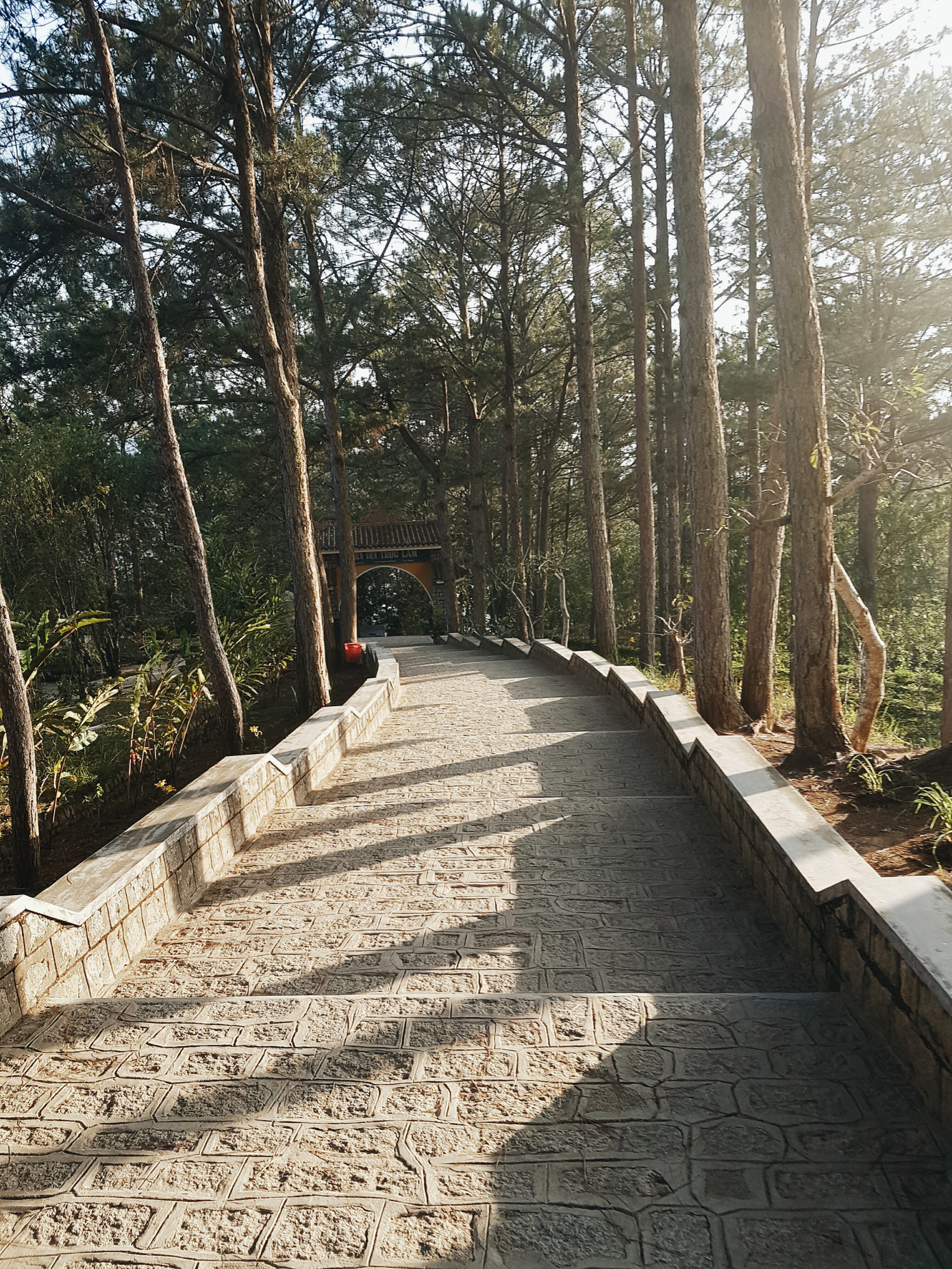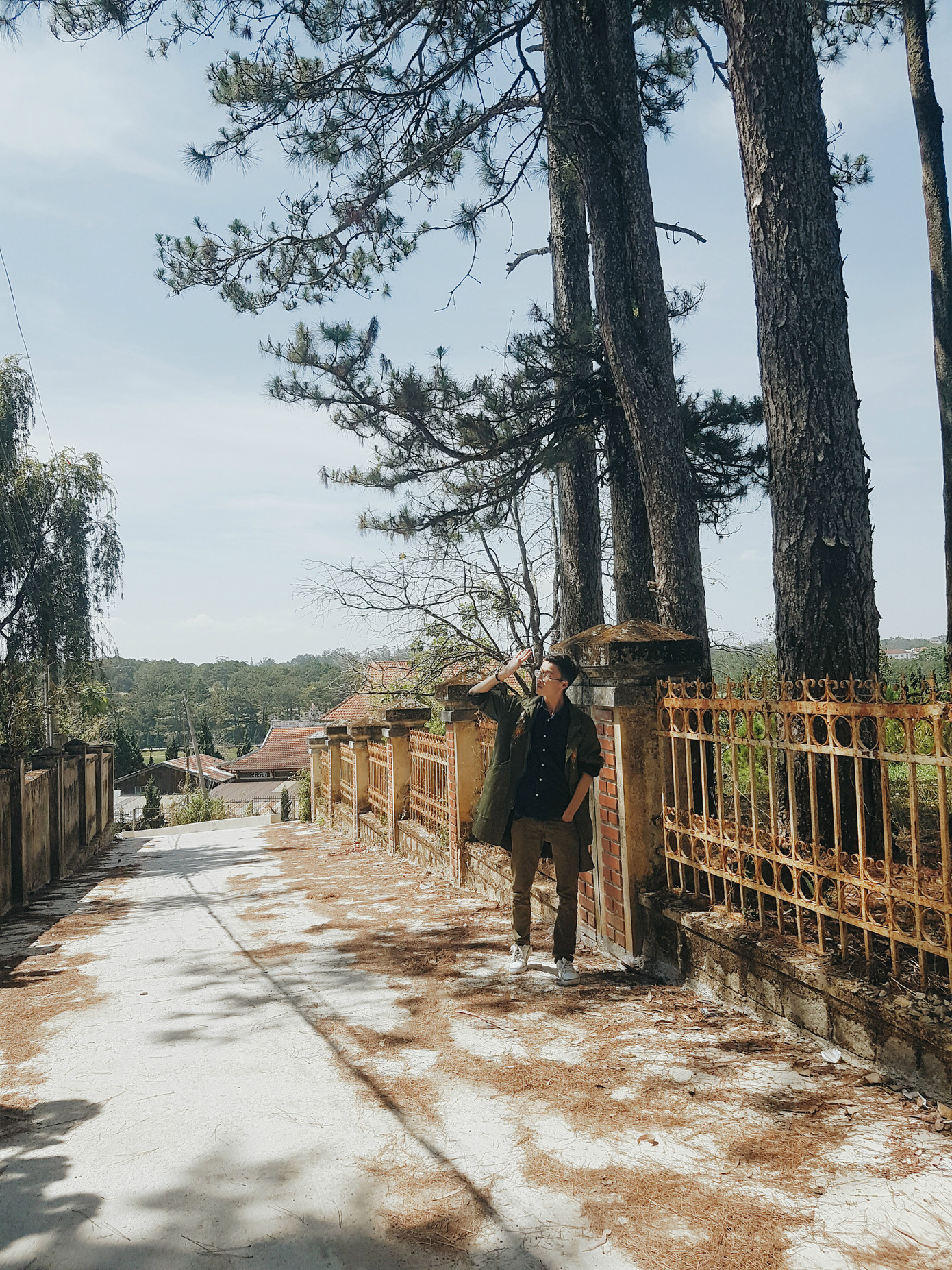 Trong lúc chờ vào tham quan trường Cao đẳng Sư phạm Đà Lạt bọn mình bắt gặp một đoạn dốc gần đó xung quanh là hai mảng tường cũ cùng hàng cây xanh ngát, chụp hình lên thì “không còn chỗ chê”.