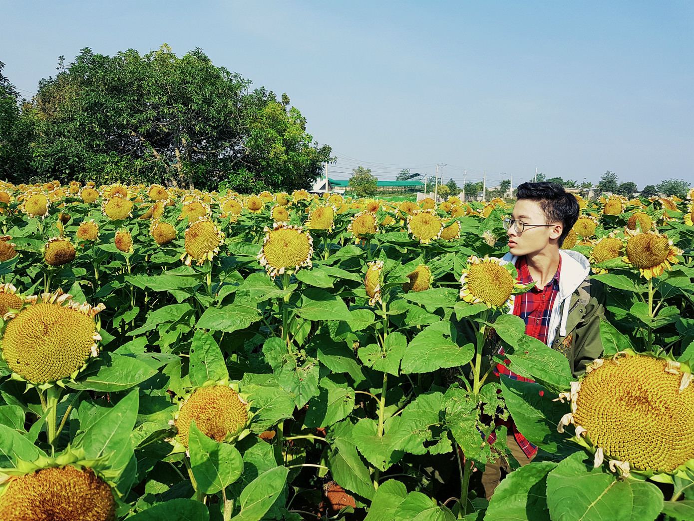 Phía đối diện Mê Linh Coffee Garden là một cánh đồng hoa hướng dương. Tuy nhiên, còn tùy vào may rủi của bạn có đến đúng lúc hoa nở hay không. Nếu may mắn, bạn có thể chụp được cả một cánh đồng hoa hướng dương vàng rực hướng về phía mặt trời.