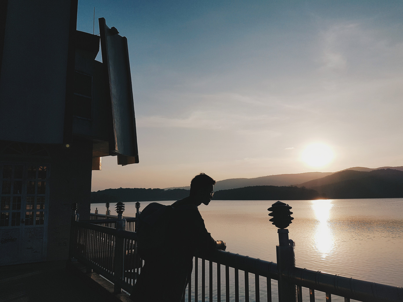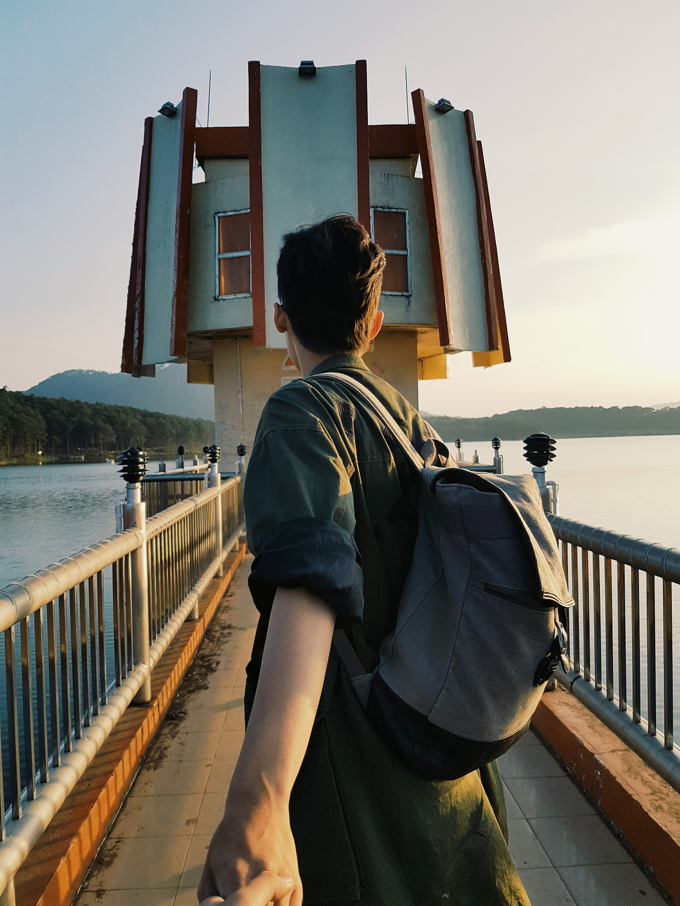 Bọn tớ may mắn được ngắm hồ Tuyền Lâm lúc hoàng hôn.