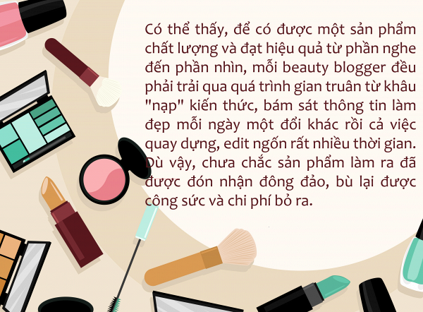 Một đoạn clip ngắn dù không quá 10 phút nhưng lượng thông tin mà nó mang lại cho cư dân mạng lại không phải chỉ gói gọn trong đó. Để vừa chia sẻ các kinh nghiệm về mỹ phẩm, các quy trình chăm sóc da, cũng như các bước make-up thế nào đúng cách thì người làm clip phải hiểu rõ hơn ai hết. Chẳng những vậy, để tạo ra được một đoạn beauty vlog gần gũi, tạo hiệu ứng lan truyền đến nhiều tín đồ làm đẹp cũng không phải là điều dễ dàng.