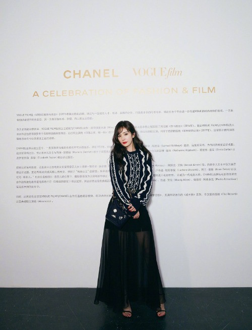 Xuất hiện trong một sự kiện, Dương Mịch diện áo len họa tiết cùng chân váy dài, chất liệu ren xuyên thấu, sandals quai ngang và túi xách hàng hiệu. Set đồ này giúp Dương Minh trở nên thanh lịch, trẻ trung mà vẫn sành điệu.