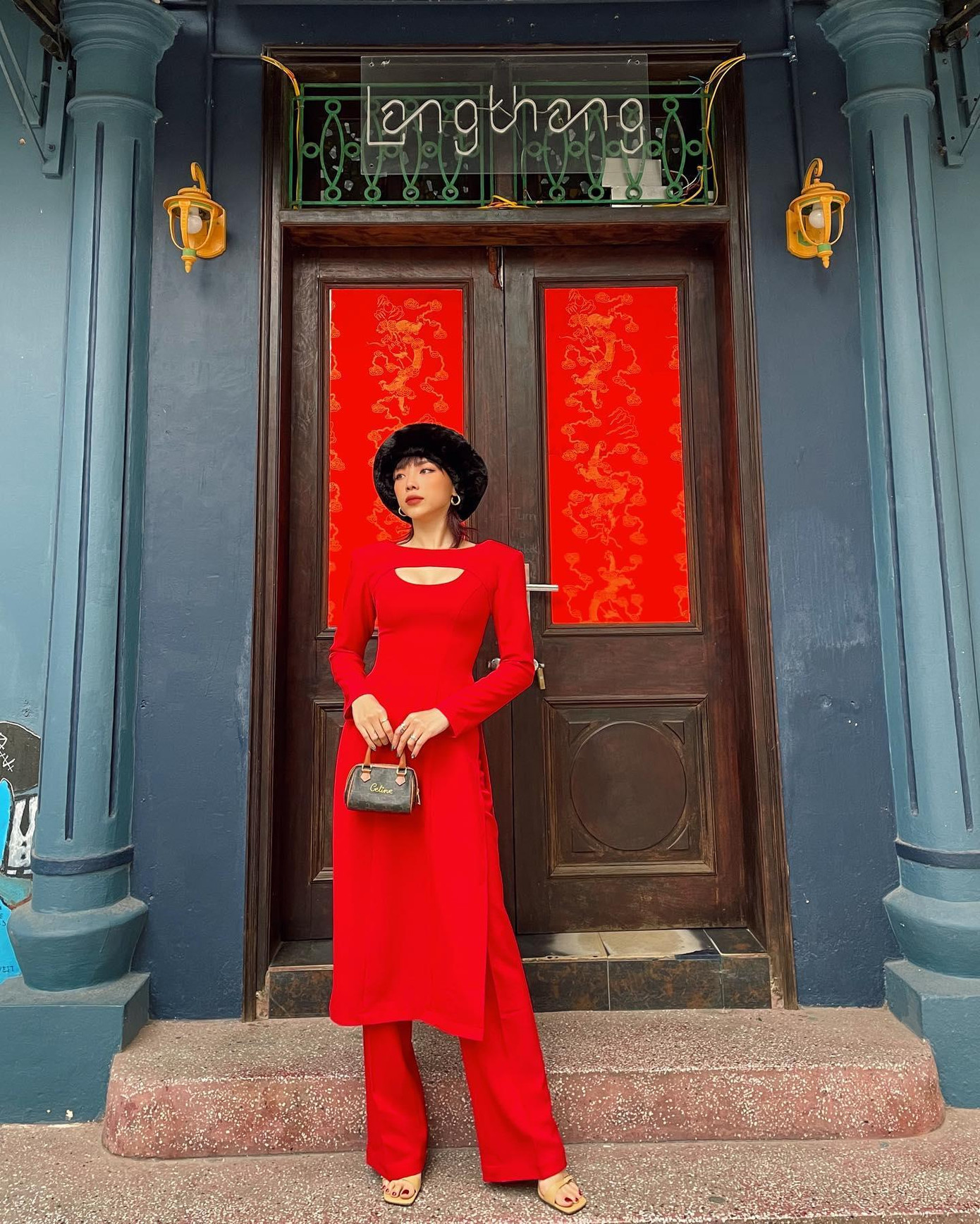 Chiếc áo dài mang sắc đỏ rực rỡ cùng đường cắt xẻ tinh tế làm điểm nhấn càng giúp sắc vóc cô nàng "thăng hạng" và nổi bần bật giữa tiết trời rét buốt của Hà Nội. Như đã chia sẻ trên Story Instagram, năm nay, giọng ca Em Đã Có Người Mới đón Tết ở Hà Nội - cũng là quê của ông xã Hoàng Touliver. Cả hai đã có khoảng thời gian cuối năm, đầu năm mới vui vẻ, ấm áp ở Thủ đô.