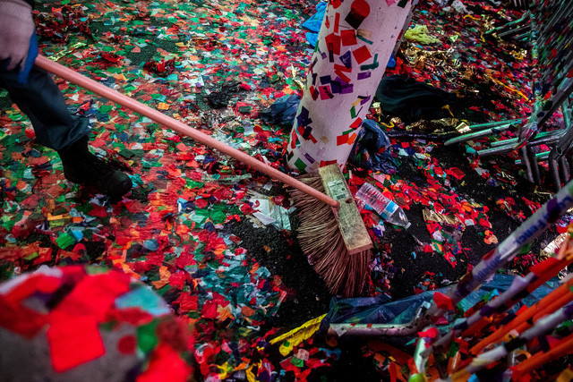 “Đó là một cuộc phiêu lưu, thú vị nhưng cũng vất vả. Hoa giấy là khủng khiếp nhất. Khi bạn càng cố nhặt chúng lên, chúng càng bay ra xa. Nhưng chúng tôi cũng có thiết bị để xử lý và biết cách làm thế nào để dọn sạch”, Angel Vega, người có 20 năm kinh nghiệm làm công việc dọn dẹp, chia sẻ.