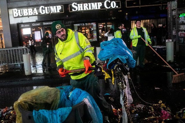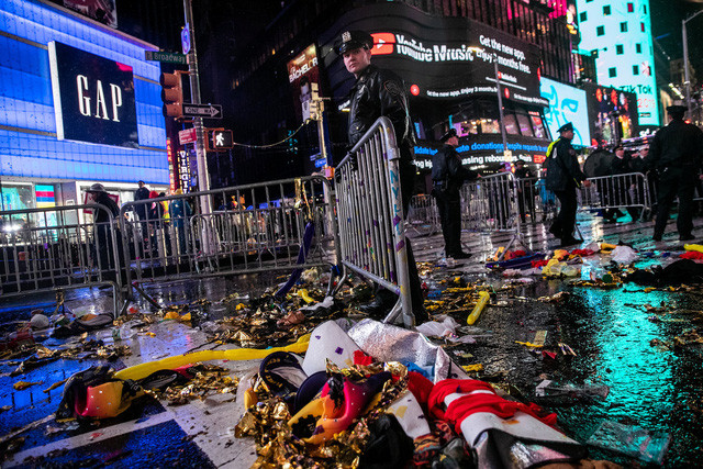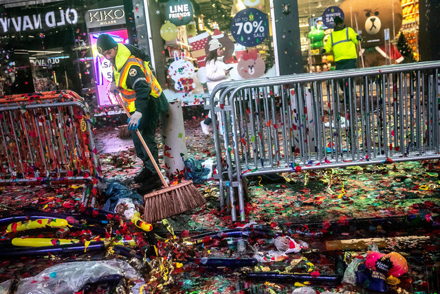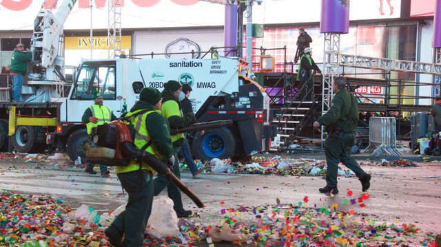 Khoảng 300 nhân viên thuộc cơ quan vệ sinh môi trường New York đã được huy động để dọn 56 tấn rác sau đêm giao thừa tại Quảng trường Thời đại năm nay.