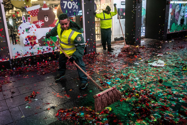 “Lễ đón giao thừa tại thành phố New York không chỉ đưa hàng triệu người tới Quảng trường Thời đại, mà còn mang theo hàng tấn rác. Nhờ một nhóm nhân viên vệ sinh môi trường, những mẩu hoa giấy cuối cùng đã nhanh chóng được dọn sạch”, Kathryn Garcia, lãnh đạo cơ quan vệ sinh môi trường New York, nói với trang tin ABC.