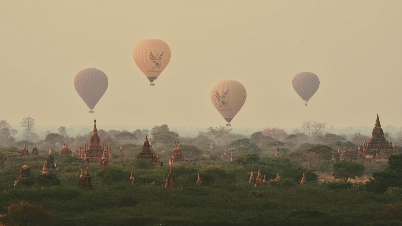 Không cần đến tận trời Âu mới ngắm được một bầu trời tràn ngập khinh khí cầu như thành phố Cappadocia (Thổ Nhĩ Kỳ), “người anh em” Myanmar sẽ hiện thực hóa giấc mơ của bạn. Hãy bắt đầu một ngày thật sớm, thuê xe điện tại khách sạn và chạy đi ngắm bình minh cùng những quả khinh khí cầu trên những ngôi đền tại Bagan. Đừng quên mạnh dạn “gửi nhờ” những bộn bề, áp lực, lo toan theo những quả khinh khí cầu xinh đẹp trên trời cao.