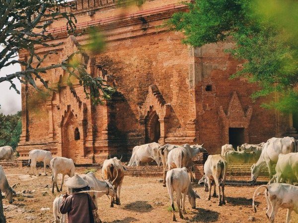 Bình minh tại Bagan “đổ” một gam màu bình yên, thư thả lên cuộc sống đời thường tại những ngôi làng nhỏ, những lớp bụi đường của xe ngựa hay từng đàn dê, đàn bò dắt díu nhau trên đường.