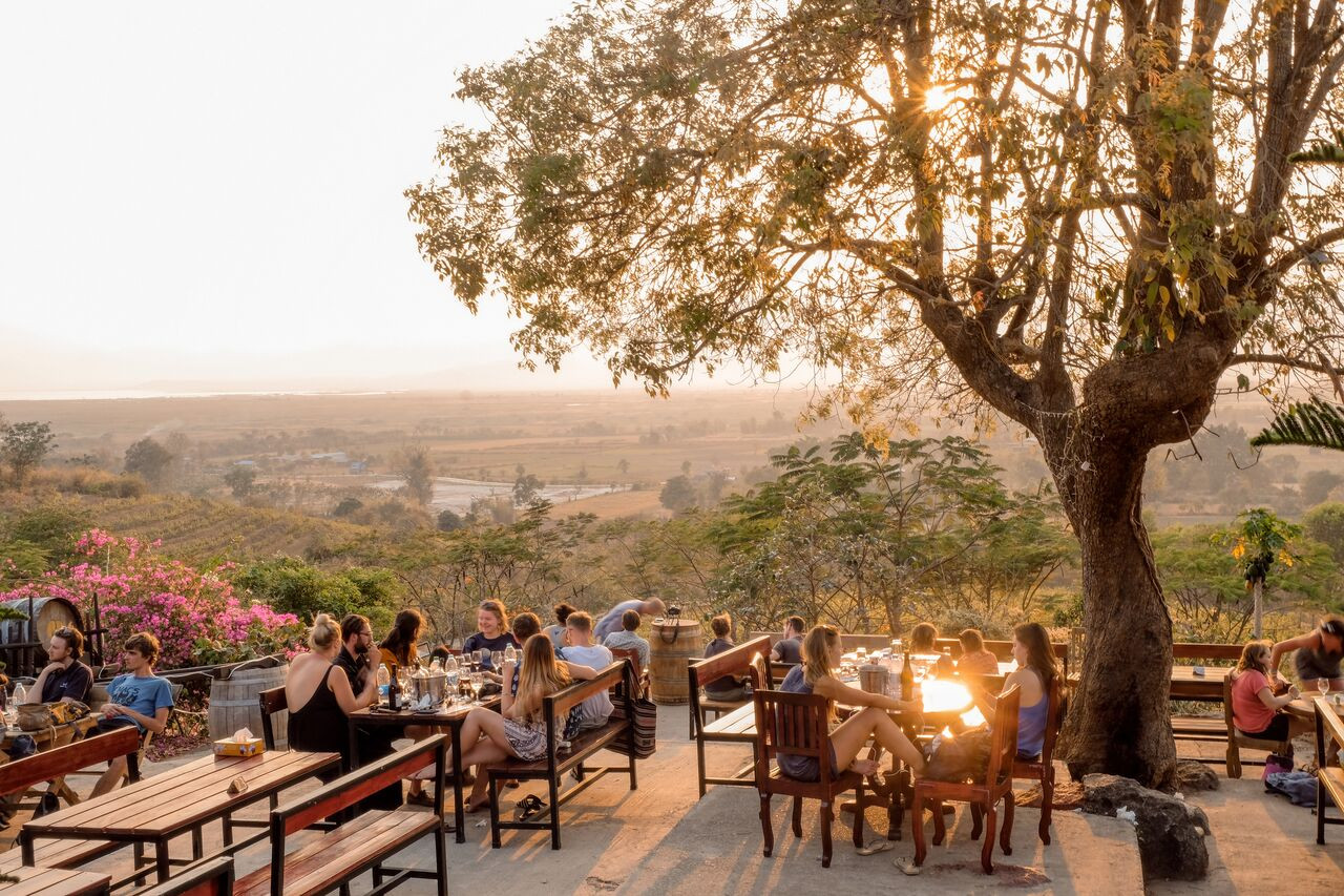 Bên cạnh hồ Inle còn có ngọn đồi Red Mountain bạt ngàn những vườn nho và rượu vang nổi tiếng. Nho tại đây là giống nho nhập khẩu từ Pháp, Tây Ban Nha, được trồng theo kiểu thân leo thẳng. Thậm chí, nơi đây có hẳn một nhà máy sản xuất nho tại chỗ.