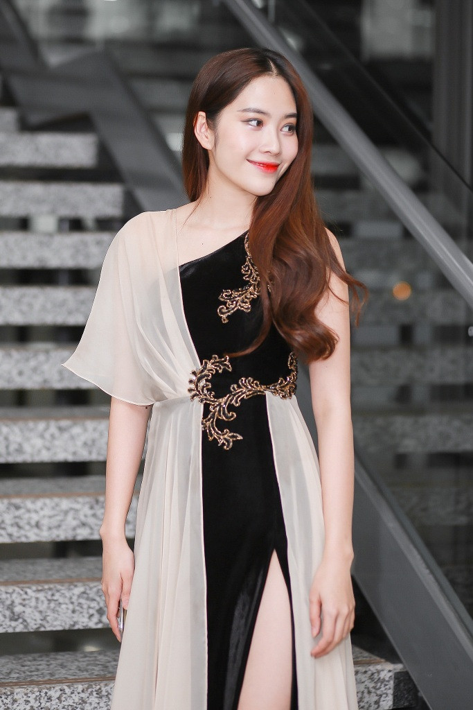Diện bộ trang phục truyền thông Hàn Quốc tại sự kiện, Nam Em ngay lập tức gây chú ý và tạo được thiện cảm với nhiều vị khách đến từ xứ kim chi.