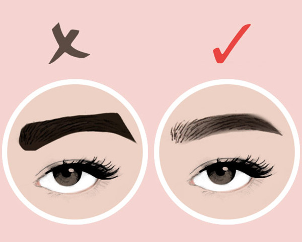 Thay vì kẻ lông mày dài và đậm màu, đường kẻ sắc nét, bạn nên kẻ ngắn, màu sắc vừa phải. Tạo độ hài hoà với lông mày tự nhiên của bản thân. Ngoài ra có thể sử dụng thêm mascara lông mày để chuốt màu được đến từng sợi lông mày và giữ chúng vào nếp lâu hơn.