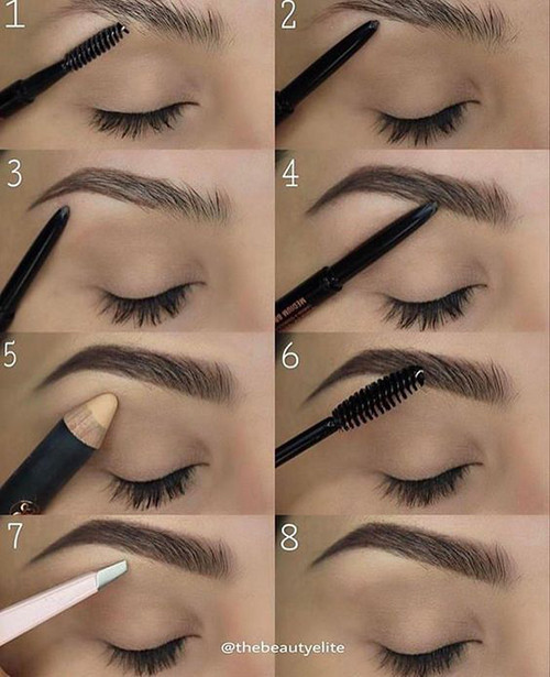 Các nàng nên tỉa gọn gàng những sợi lông mày mọc lệch khỏi hàng, tỉa theo dáng lông mày tự nhiên sẵn có, trước khi kẻ nên dùng đầu cọ của bút kẻ mày để giúp các sợi lông mày được vào nếp.
