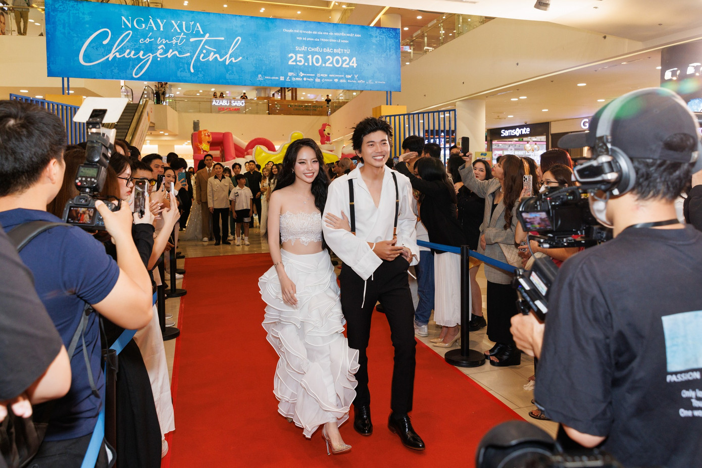 Rima Thanh Vy "đụng hàng" thiết kế với Xoài Non trong sự kiện ra mắt phim điện ảnh Ngày Xưa Có Một Chuyện Tình diễn ra vào tối ngày 23/10. Nữ diễn viên 29 tuổi kết hợp bộ trang phục cùng trang sức tông bạc tối giản, layout trang điểm kim tuyến cùng kiểu tóc đen dài xoăn sóng nước.