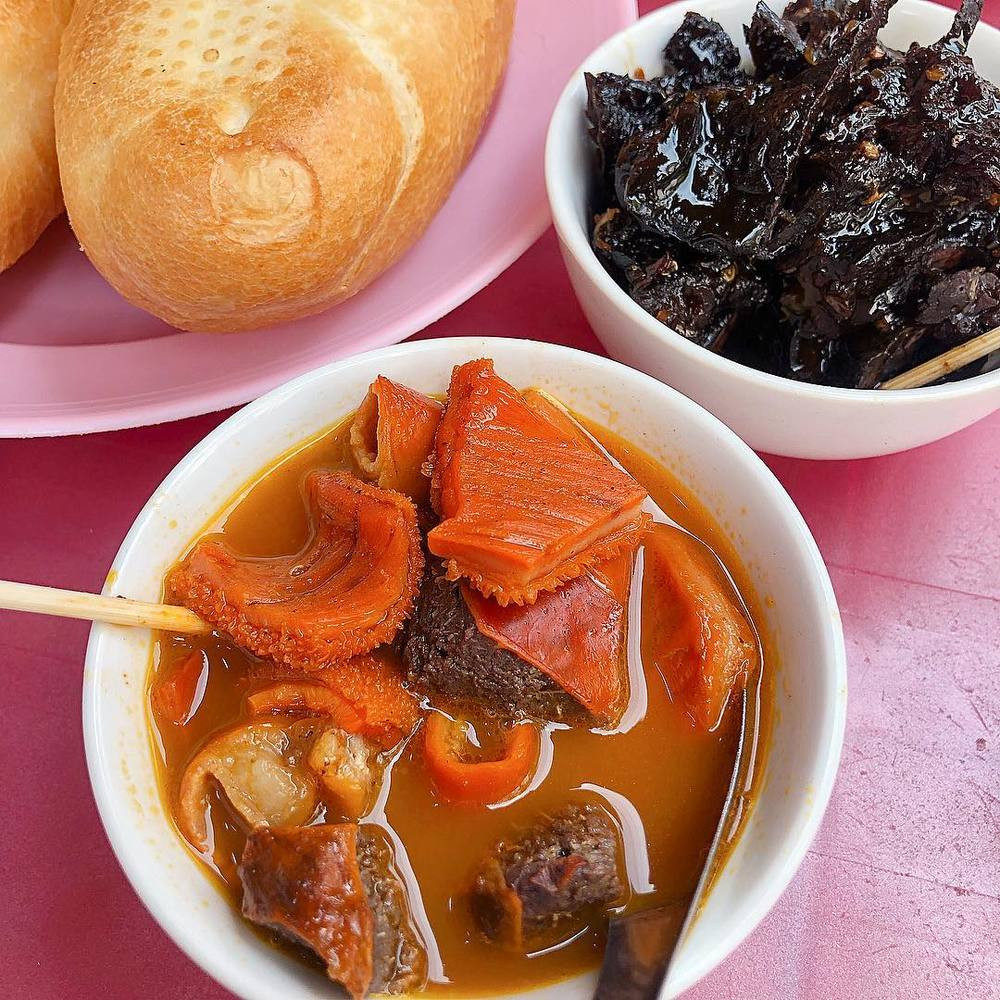 Thiên đường phá lấu không đâu xa chính là khu Tôn Đản, Q.4, TP.HCM. Mình hay ăn tiệm của dì Nũi, nằm ổ số 243/30 Tôn Đản. Phá lấu của dì Nũi ăn không bị hôi, nước chấm vừa miệng, chua ngọt thơm thơm mùi tắc, bánh mì giòn rụm.