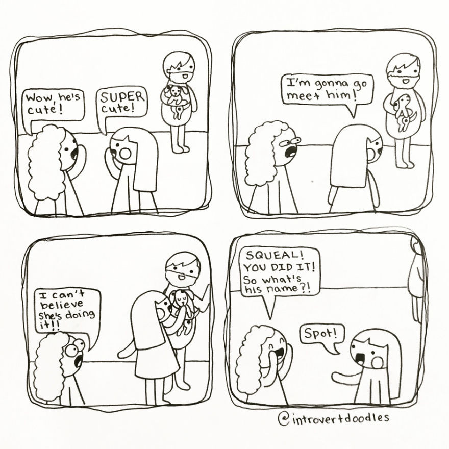 Marzi, một nữ họa sỹ trẻ tuổi, đã post lên trang Instagram của mình một bộ tranh vui. Nội dung của những bức tranh xoay quanh cuộc sống của một cô nàng hướng nội. Nàng tha thiết muốn giao tiếp với bản thân, cố tìm hiểu bản thân hơn là bước ra ngoài thế giới.