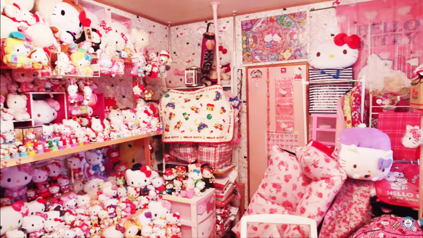 Ở tuổi 67, bác Masao Gunji bắt đầu dành thời gian sưu tầm những món đồ “hường phấn” về nhân vật Hello Kitty. Tính đến nay, bác Masao Gunji đã có trong tay... 5169 vật phẩm liên quan đến Hello Kitty từ hộp bento, khăn tắm, poster, gấu bông. Bộ sưu tập này còn “hoành tráng” tới mức vượt mặt kỉ lục gia cũ Asako Kanda cũng đến từ Nhật Bản, người nắm giữ 4519 vật phẩm liên quan đến Hello Kitty.