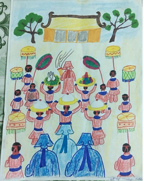 Không chỉ đồng quê, khu vui chơi mà ngay cả lễ hội cũng xuất hiện trong tranh của chúng ta ngày còn đi học.