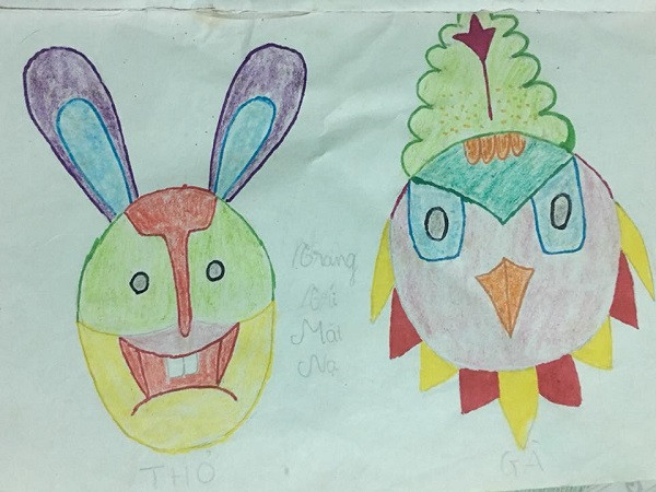 Ngoài những bức tranh vẽ về nhân vật thì bức tranh trang trí mặt nạ cũng nằm trong danh sách "rèn luyện".