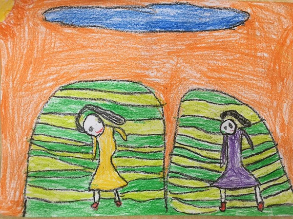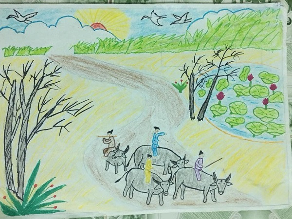 Đồng quê bình yên qua bức tranh ngày nhỏ này chắc hẳn ai cũng đã từng vẽ nó.