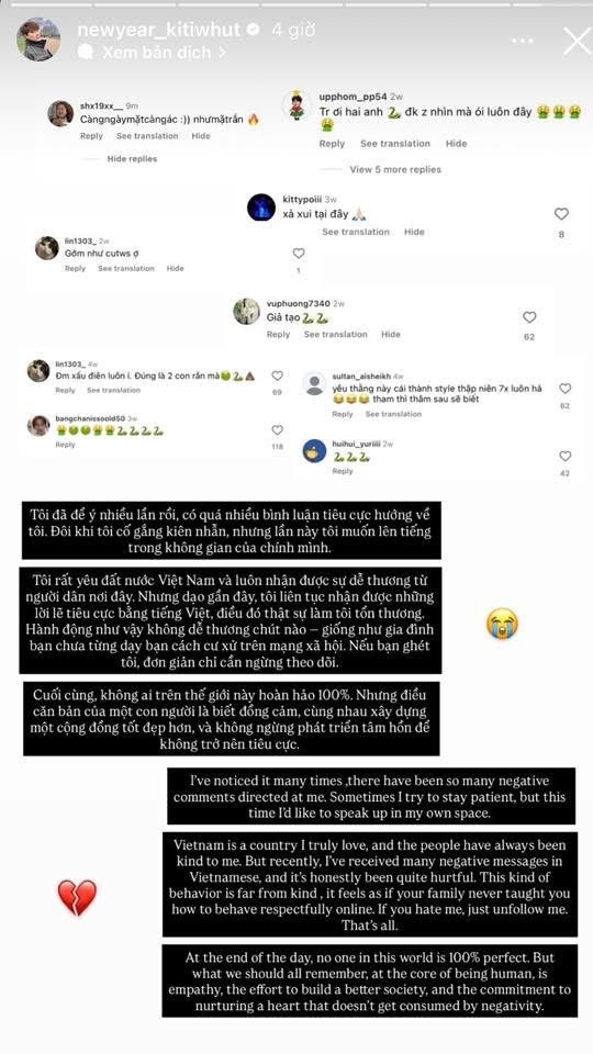 Câu chuyện càng trở nên căng thẳng hơn khi Newyear đăng story bức xúc bằng tiếng Việt - một động thái được cho là “điểm mặt chỉ tên” các tài khoản để lại bình luận tiêu cực. Một số fan Việt còn phản ứng gay gắt hơn, tuyên bố sẵn sàng dịch lời chỉ trích sang tiếng Anh hoặc tiếng Thái nếu cần.