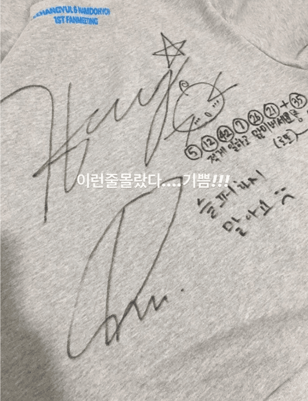 Khi được đề nghị ký tặng lên chiếc áo thun của một fan, Lee Hangyul đã nhắn ngủ “Làm ít đi, nhận được nhiều hơn” và liệt kê ra bảy con số được viết trong các vòng tròn, giống như một dãy số trong các tấm vé xổ số điện toán vậy đó. Đó là các số 5, 12, 42, 7, 26, 21 và số phụ 35. Có thể Hangyul chỉ viết một cách ngẫu nhiên những con số nghĩ đến trong đầu thôi, nhưng nhiều fan đã quyết định đi mua xổ số theo những gì anh chàng gợi ý.