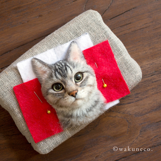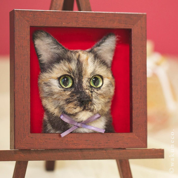 Được biêt, Wakuneco bắt đầu công việc này từ năm 2015. Ban đầu, chị ấy thường lấy cảm hứng các bức ảnh về mèo trên mạng để làm ra những tác phẩm mang vẻ đẹp chân thực. Sau khoảng 1 tháng làm việc miệt mài, chị mới có thể làm được một tác phẩm có kích thước to bằng một nắm tay. Để làm tăng thêm sự sinh động, Wakuneco còn đặt chúng vào chiếc khung bằng gỗ.