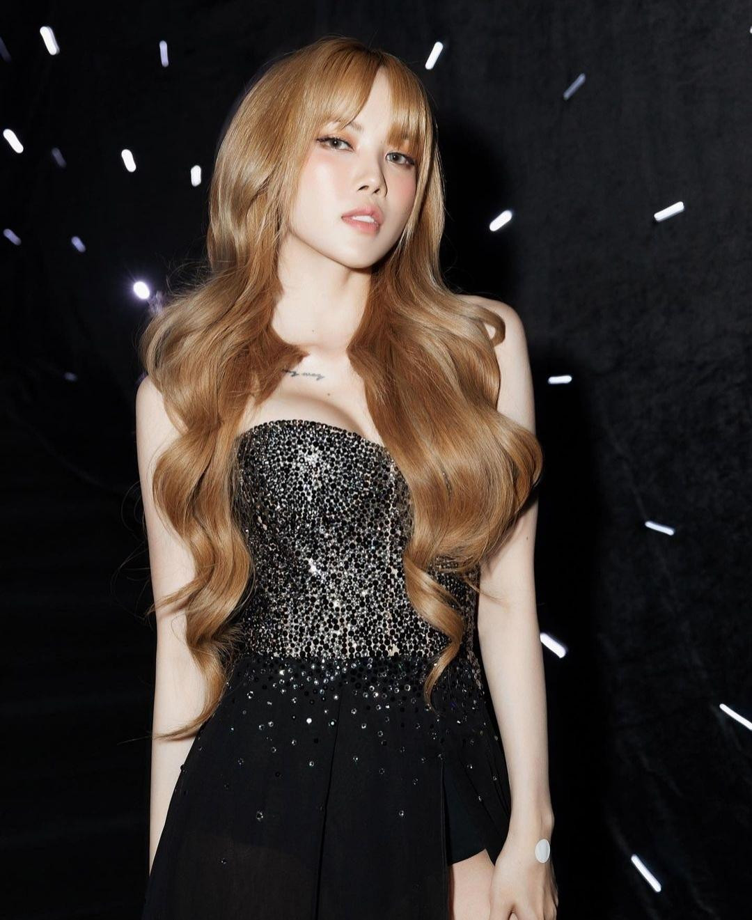 Khi nhuộm màu vàng sáng, Thiều Bảo Trâm chiếm trọn ánh nhìn bởi màu tóc làm nổi bật làn da trắng sứ của cô nàng.