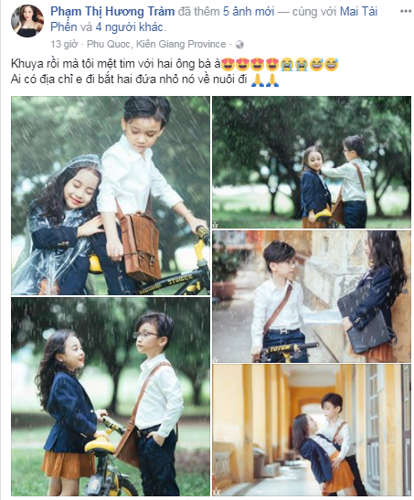 Ngay đến bản gốc Hương Tràm cũng đã chia sẻ bộ ảnh này trên trang cá nhân với đầy sự thích thú và ngợi khen cho hai bé.