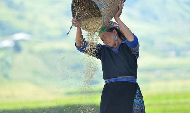 Năm 2007, ruộng bậc thang ở 3 xã La Pán Tẩn, Dế Xu Phình, Chế Cu Nha được Nhà nước công nhận Danh thắng quốc gia. Không chỉ vậy, Mù Cang Chải còn vào top 10 ruộng bậc thang đẹp nhất thế giới. Hình ảnh người dân tại khu vực xã La Pán Tẩn mùa thu hoạch lúa.