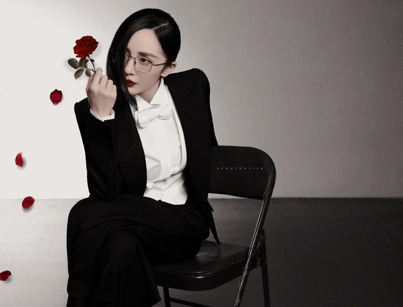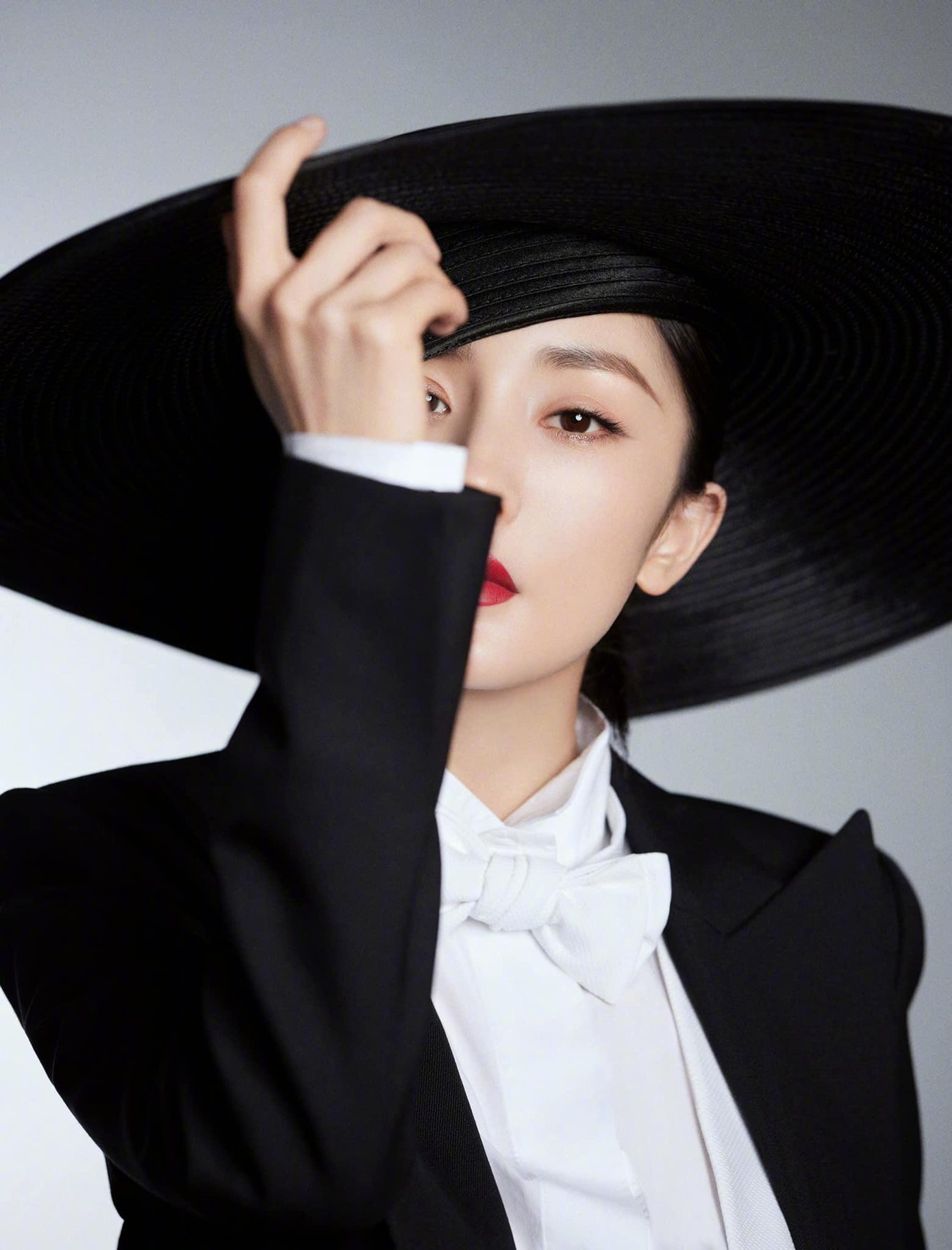 Cô để kiểu tóc hime ấn tượng, trang điểm son đỏ đậm, khoe nhan sắc như một nữ tổng tài.