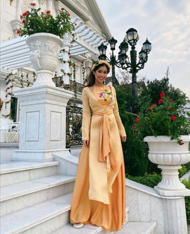 Dịp Tết Tân Sửu vừa qua cô nàng thu hút sự quan tâm vì diện trang phục truyền thống Việt Nam với váy tứ thân màu vàng dịu dàng, thướt tha.