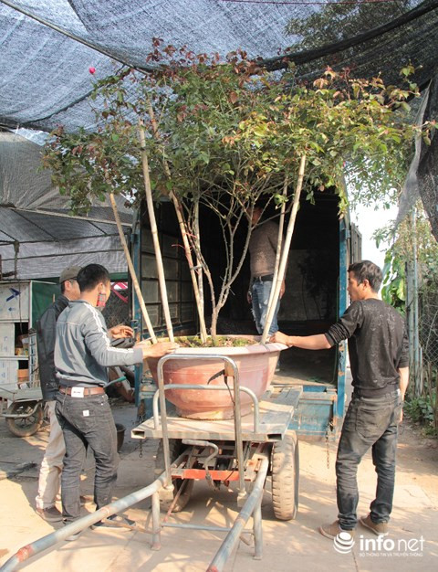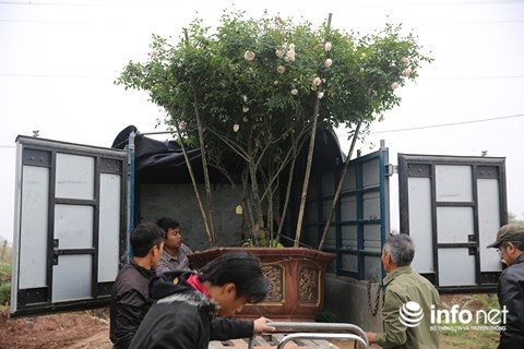 Gốc hồng cổ Sapa có giá hơn chục triệu đồng đang chuẩn bị lên xe giao cho khách.