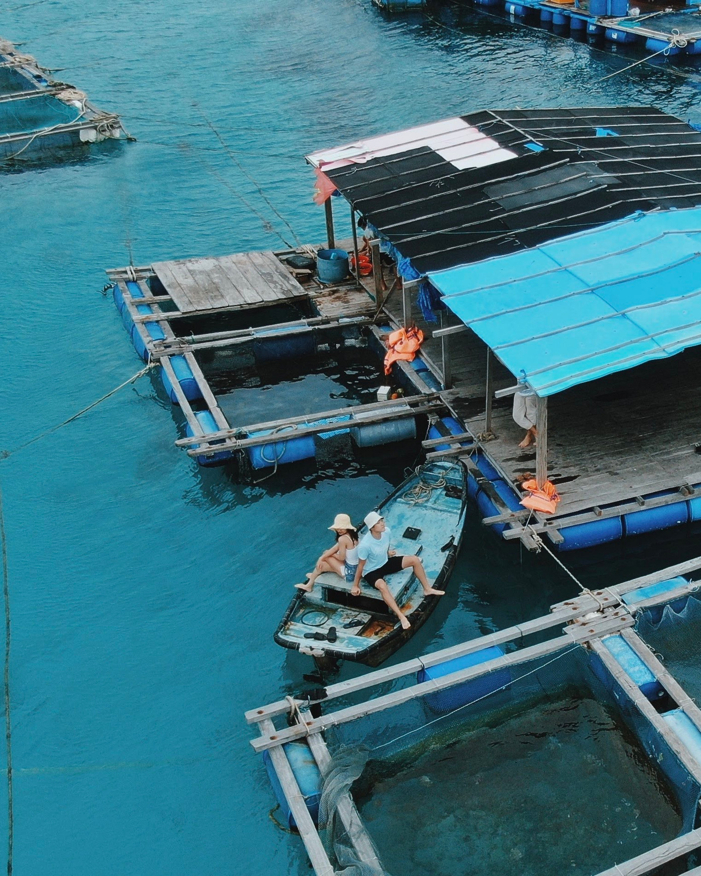 Vào đúng ngày cuối tuần nên các nhà bè ở đây khách tập trung rất đông. Không khí rôm rả, náo nhiệt cả một vùng biển. Hầu hết các lồng bè ở đây nuôi các loại cá mú đỏ và mú cọp để xuất bán. Riêng các loại hải sản cao cấp khác như tôm đỏ, ốc nhảy, bò dép, ốc vú nàng…đều được mua về nuôi tại lồng bè để phục vụ du khách.