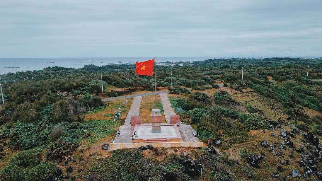 Cột cờ trên đảo Phú Qúy thể hiện chủ quyền và quyền lảnh thổ của Việt Nam, hiên ngang với cờ đỏ sao vàng bay phấp phới trong chiều lộng gió. Từ đây, có thể phóng tầm mắt bao quát toàn bộ quan cảnh bãi Nhỏ, Gành Hang đẹp tựa thiên đường, xa xa là những chiếc thuyền của ngư dân neo đâu, tàu hải quân giám sát trên biển…
