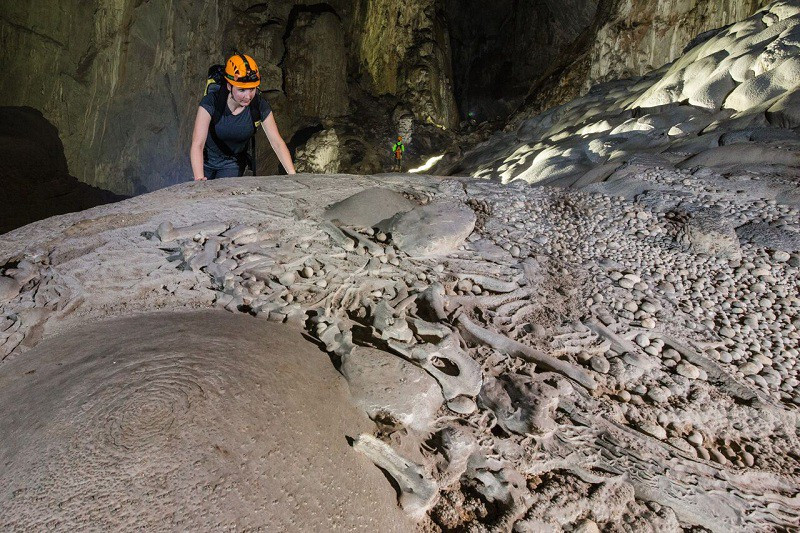 “Bức tường Việt Nam” là một khối thạch nhũ khổng lồ dài hàng trăm mét nằm bên trong hang Son Đoòng, được hình thành trong quá trình kiến tạo địa chất của vỏ trái đất. Đây chính là điểm cuối của hành trình khám phá hang động lớn nhất thế giới