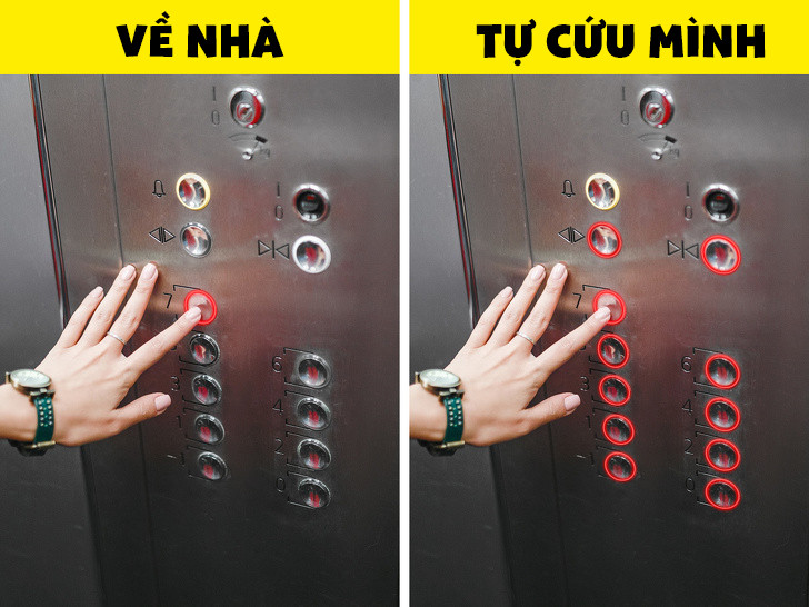 Ngoài ra, nếu phải đi chung thang máy với kẻ nào đó khả nghi, hãy bấm tất cả các nút trên bảng điều khiển, vừa để cho mình có cơ hội thoát ra, vừa tìm kiếm sự chú ý của người khác.