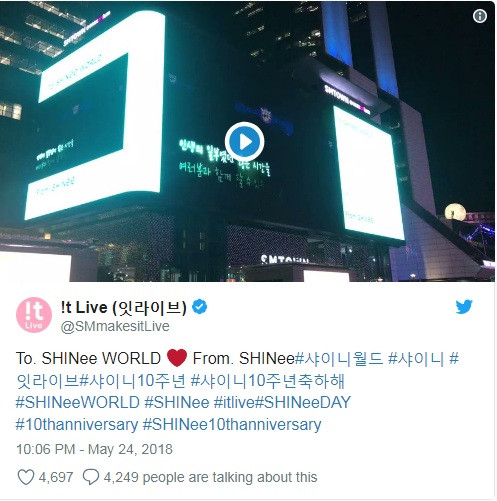Trên tòa nhà SMTOWN Coex Artium có hiển thị lời nhắn dài mà SHINee gửi đến fan, Instagram chính thức của nhóm có gửi lời cảm ơn khán giả đã luôn yêu mến, tin tưởng và đồng hành với SHINee suốt 10 năm qua. SHINee khẳng định rằng những khoảnh khắc được ở bên các fan chính là kho báu quý giá nhất của nhóm, nhờ vậy mà các chàng trai sẽ mạnh mẽ bước tiếp.