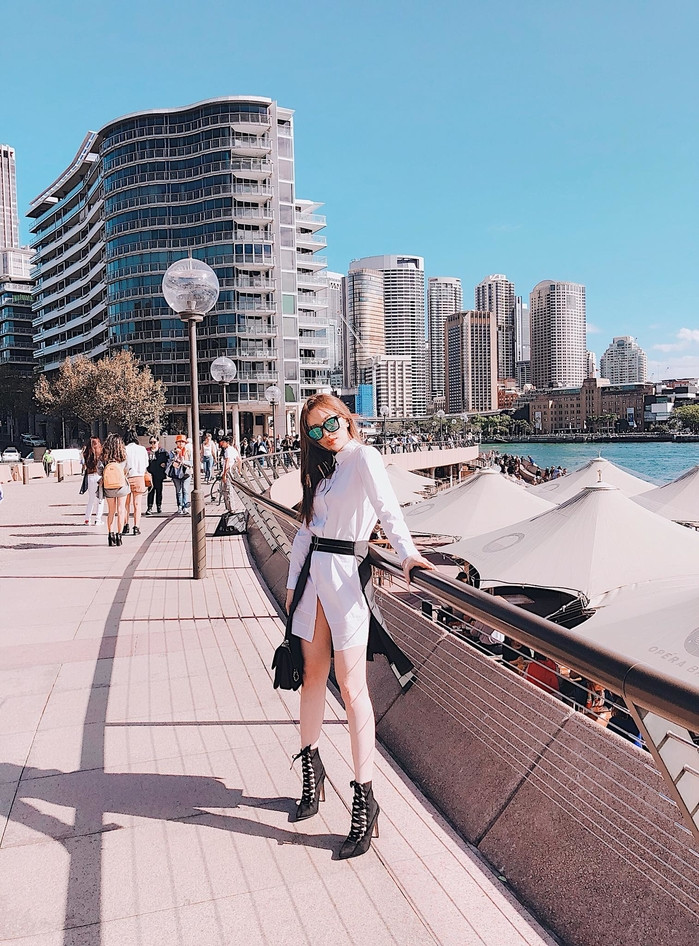 Bảo Thy lại có phần bận rộn hơn nhưng cũng kịp tranh thủ có những phút giây thư giãn trong chuyến chuyến lưu diễn ở Úc.