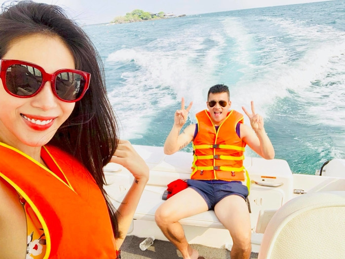 Cặp vợ chồng Thủy Tiên, Công Vinh chọn cho mình những giây phút thư giãn trên biển.