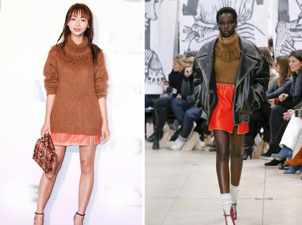 So sánh với hình ảnh bộ đồ do người mẫu mặc, nữ diễn viên bị chê đã làm "hạ giá" trang phục vì cách mix đồ thiếu tinh tế.