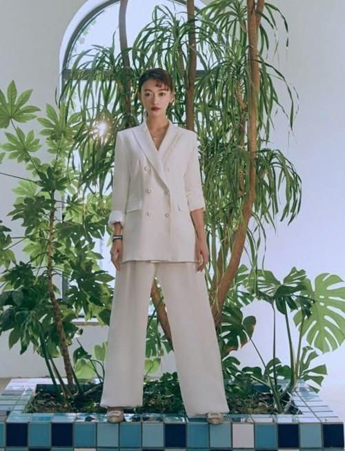 Bộ suit trắng thời thượng khoác lên mình Ngụy Anh Lạc lại không đạt được hiệu quả tốt. Cô nàng như lọt thỏm trong trang phục.