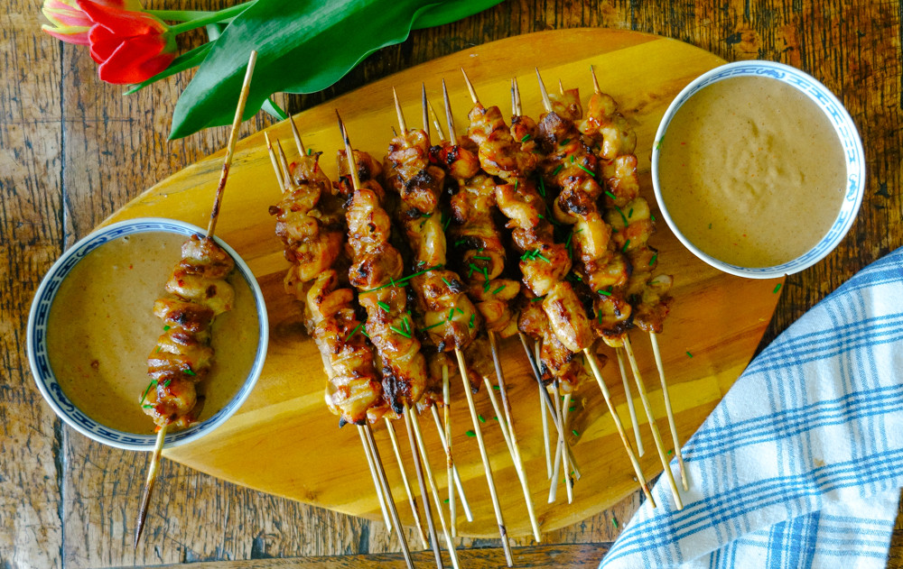 Thịt được tẩm ướp gia vị, xiên vào que tre đã được vót nhọn, sau đó nướng trên lửa cho đến khi chín, thơm. Tuy nhiên điểm đặc sắc của món ăn này chính là phần nước sốt tạo nên từ nước thịt khi nướng trộn với sốt đậu phộng và hành tây. Thịt nướng thường được ăn kèm với dưa leo và đồ chua.